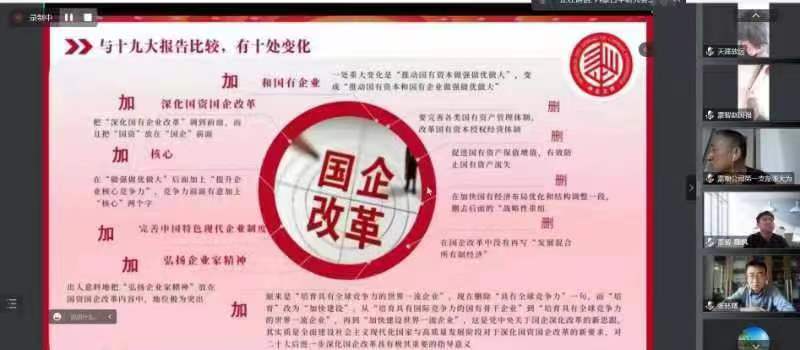 为推进内蒙古KY.COM全体干部职工进一步学习领悟党的二十大报告的深刻内涵、精神实质和实践要求,把学习宣传贯彻党的二十大精神与分析形势、规划未来、执行政策、推进工作结合起来,11月2日,公司党委组织召开学习党的二十大精神培训会,公司全体干部职工、分子公司全体党员共99人按时参加培训。根据疫情防控工作要求,培训会议线上召开。