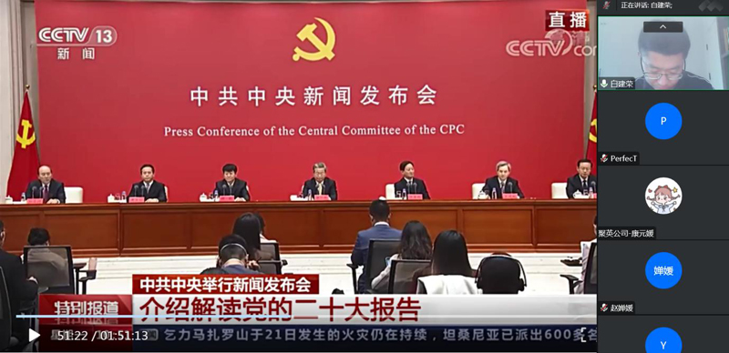 按照国资公司《关于开展二十大精神专题学习研讨的工作提醒》及近期工作相关要求,人才集团党支部于11月3日下午组织全体党员及入党积极分子线上召开学习宣传贯彻党的二十大精神专题学习会,并安排部署重点工作。